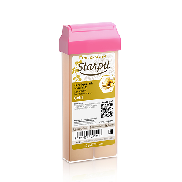 Mocno nawilżający, z drobinkami złota dzięki którym zachowuje temperaturę ciała dając komfort depilacji . Zawiera dużo dwutlenku tytanu, bezparafinowy, kolor złoty, perłowy.