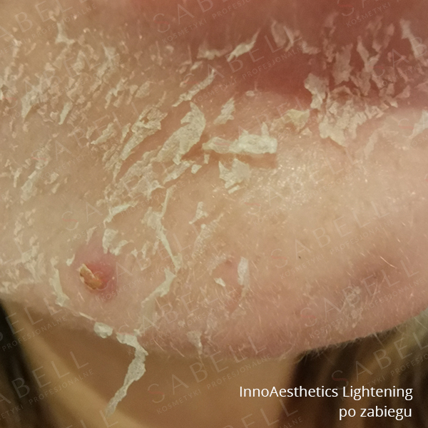Unikalny skład peelingu tworzą pochodna witamina A oraz aktywne składniki depigmentacyjne, antyoksydacyjne i przeciwstarzeniowe. Zabieg INNO-EXFO Lightening jest skuteczną terapią rozjaśniającą, jednocześnie powodując przywrócenie równowagi skórze mieszanej i tłustej. Skóra po zabiegu jest gładka, elastyczna i odzyskuje swój naturalny blask. Zabieg może być stosowany również w okresie letnim. pH 4