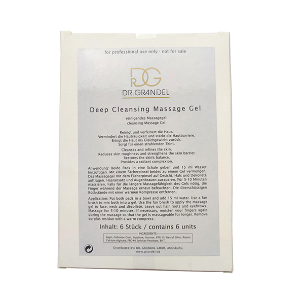Detoksykujące i oczyszczające płatki algowe przeznaczone do profesjonalnego masażu w salonie kosmetycznym. Polecane do zastosowania zgodnie z 9-etapową procedurą zabiegu głęboko-oczyszczającego DEEP CLEANSING, lub indywidualnego zastosowania według potrzeb profesjonalisty. Ekstrakt z alg brunatnych bogaty w sole mineralne, witaminy oraz polisacharydy doskonale nawilża, ujędrnia oraz poprawia koloryt skóry. Zawarty w preparacie również skwalan odbudowuje płaszcz lipidowy skóry, odżywia i regeneruje. Masaż z użyciem płatków Deep Cleansing Massage Gel oczyszcza cerę, zmniejsza szorstkość skóry oraz wzmacnia jej barierę ochronną.