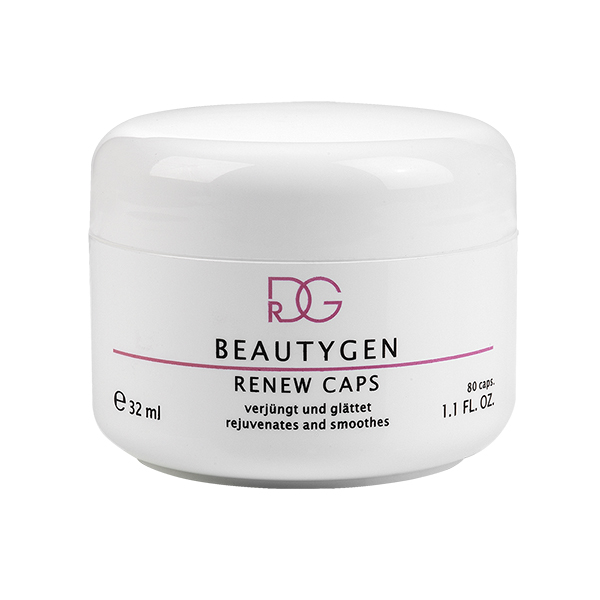 Renew Caps to istne perły piękności, które widocznie i natychmiast odmładzają, wygładzają i rozświetlają skórę. Kluczowy składnik czyli liposomowy ekstrakt z alg śnieżnych, aktywuje „gen piękności” skóry, chroni włókna kolagenowe i stymuluje ich produkcję. Ceramidy chronią przed utratą wody, wzmacniają elastyczność i jędrność skóry. Renew Caps dzięki zawartości ekstraktu Hydraherba, uzupełniają rezerwy wody w skórze i gwarantują promienny blask cery. Aksamitna konsystencja pereł natychmiast wygładza nawet ekstremalnie szorstką skórę.