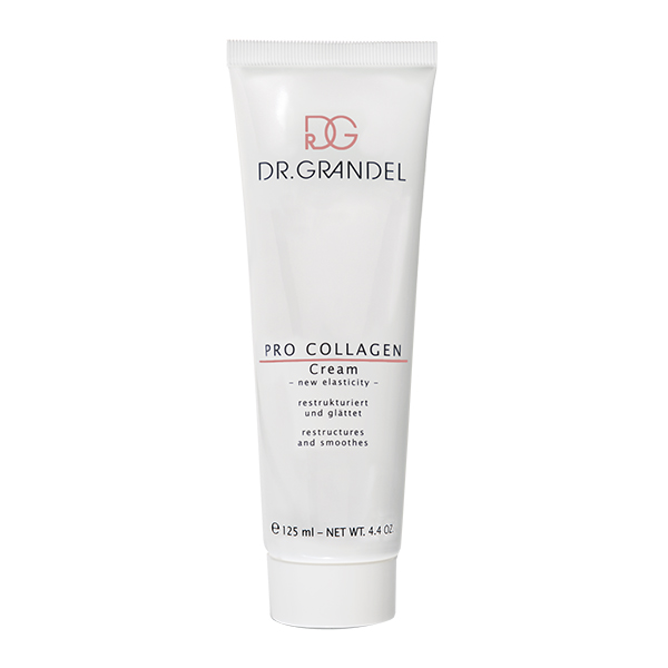 Ciesz się gładką i jędrną cerą z linią PRO COLLAGEN. Odczuj wspaniały efekt pielęgnacji najnowszego kremu kolagenowego od DR.GRANDEL. Pro Collagen Face Cream przebudowuje i reorganizuje, tak aby naturalna sieć kolagenu w skórze była mocna i odporna oraz stanowiła doskonałe rusztowanie dla skóry. Kluczowe działanie kremu bazuje jednak na stymulacji własnej produkcji kolagenu. To właśnie kompleks aminokrzemowy w połączeniu z wit. C przyspiesza tworzenie się nowych włókien białkowych oraz ujędrnia już istniejące struktury kolagenu. Optymalny poziom nawilżenia zawdzięczamy glikoproteinie pochodzącej z drożdży (Pseudo Kolagen). Odżywcze masło shea pielęgnuje każdy rodzaj skóry, zapobiega wysuszeniu i decyduje o doskonałej tolerancji kremu. Ten lekki krem wygładza skórę, poprawia elastyczność i jędrność skóry. Pro Collagen Cream nie zawiera kolagenu pochodzenia zwierzęceg