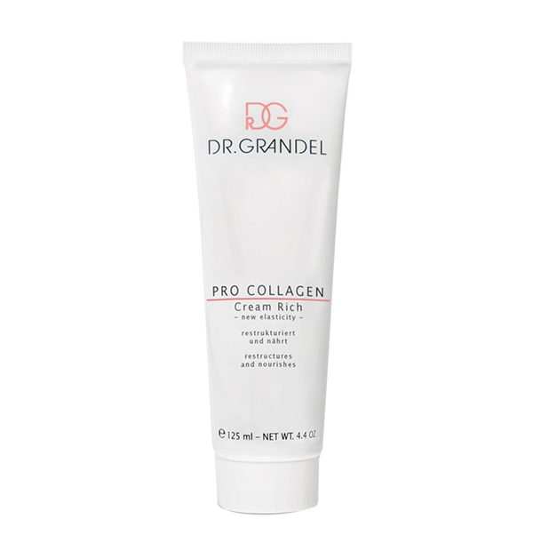 Lipidowy, ujędrniająco-odżywczy krem kolagenowy Pro Collagen Cream Rich odbudowuje siatkę kolagenu w skórze dlatego wspiera napięcie i jędrność skóry. Opracowany kompleks składników aktywnych ma na celu stymulację własnej produkcji kolagenu „kolagen booster”. Wspiera również przebudowę i reorganizację naturalnej sieci kolagenu, tak aby była mocna i odporna oraz stanowiła doskonałe rusztowanie dla skóry. Substancja czynna, kompleks aminokrzemowy o wysokiej biodostępności dla skóry, ma pozytywny wpływ na komunikację komórkową i syntezę kolagenu w skórze. Niezbędna w procesie tworzenia się włókien kolagenu jest również witamina C, jako silny antyoksydant chroni także przed wolnymi rodnikami. Niezwykle ważnym elementem receptury kremu jest kompleks Pseudo Kolagen, który jako biotechnologiczny ekwiwalent kolagenu optymalizuje profil nawilżenia skóry dlatego zapobiega utracie wody ze skóry, uszczelnia ją. Bogata konsystencja kremu pielęgnuje suchą skórę, pozostawiając ją jędrną, miękką i odżywioną. Takie działanie zawdzięczamy masłu shea oraz olejowi migdałowemu. Krem nie zawiera kolagenu pochodzenia zwierzęcego. Naturalna receptura.