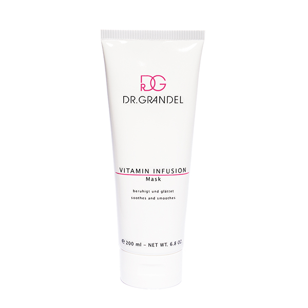 Kremowa, witaminowa maska do twarzy łagodzi podrażnienia, rewitalizuje i odżywia. Nowoczesna, rozpuszczalna w tłuszczach forma witaminy C o ulepszonej przenikalności delikatnie rozświetla przebarwienia, chroni i wzmacnia. Dzięki niej każdy rodzaj skóry wygląda zdrowo i świeżo. Kompleks Defence Balancer o udowodnionym, silnym działaniu kojącym bazuje na kompozycji ekstraktu z winorośli balonowej (Cardiospermum helicacabum) oraz fitosterolach. Zapobiega powstawaniu stanów zapalnych, łagodzi swędzenie i zaczerwienienia. Fitosterole wzmacniają barierę ochronną skóry i zmniejszają stany zapalne, aby wyraźnie uspokoić podrażnioną skórę. Kompleks wspaniale tolerowany jest nawet przez skóry atopowe. Nieodłącznym komponentem maski z linii Vitamin Infusion jest ekstrakt z kwiatów granatu i wit.C, które stymulują syntezę kolagenu w skórze oraz chronią istniejące włókna kolagenu przed degradacją. W owocową nutkę orzeźwienia oraz ekstra porcję witamin wzbogaca ekstrakt z mango bogaty w witaminy, flawonoidy, polifenole, minerały i karotenoidy. To właśnie karotenoidy nadają masce przyjemny, słoneczny kolor. Dodatkowo poprawiają stan tkanki łącznej skóry właściwej. Skóra staje się bardziej jędrna, elastyczna, a drobne zmarszczki są delikatnie spłycone. Kremowa, delikatnie lipidowa maska o odżywczej formule swoją fakturę zawdzięcza olejowi z nasion żmijowca babkowatego, który wzmacnia funkcje ochronne skóry oraz łagodzi.