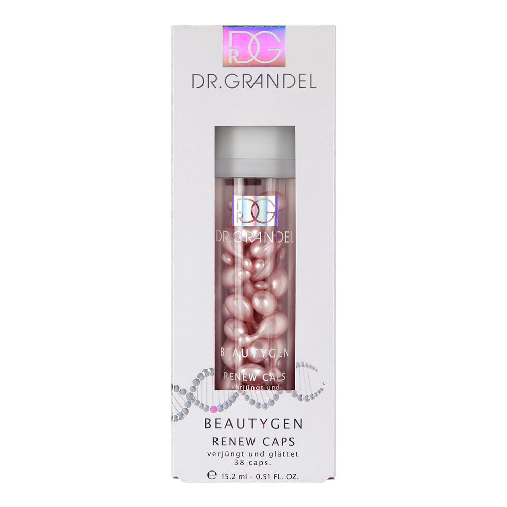 Renew Caps to istne perły piękności, które widocznie i natychmiast odmładzają, wygładzają i rozświetlają skórę. Kluczowy składnik czyli liposomowy ekstrakt z alg śnieżnych, aktywuje „gen piękności” skóry, chroni włókna kolagenowe i stymuluje ich produkcję. Ceramidy chronią przed utratą wody, wzmacniają elastyczność i jędrność skóry. Renew Caps dzięki zawartości ekstraktu Hydraherba, uzupełniają rezerwy wody w skórze i gwarantują promienny blask cery. Aksamitna konsystencja pereł natychmiast wygładza nawet ekstremalnie szorstką skórę.
